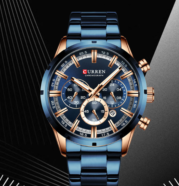 O relógio CURREN multifuncional foi projetado para homens que valorizam sofisticação sem abrir mão da praticidade. Com visual esportivo e acabamento refinado, ele combina com qualquer ocasião — do casual ao elegante.