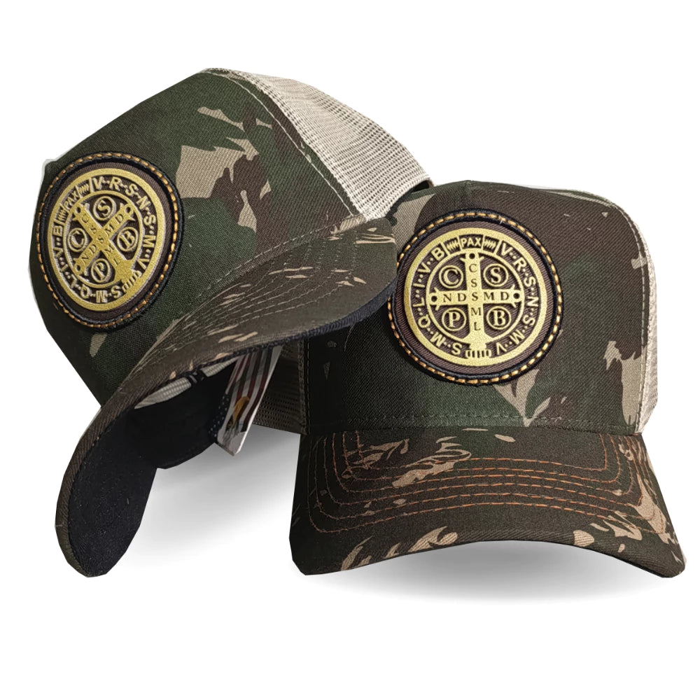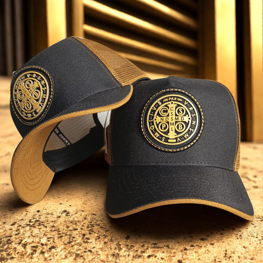 O Boné Premium São Bento une design estiloso, bordado de alto padrão e a poderosa Medalha de São Bento, símbolo milenar de fé e proteção.