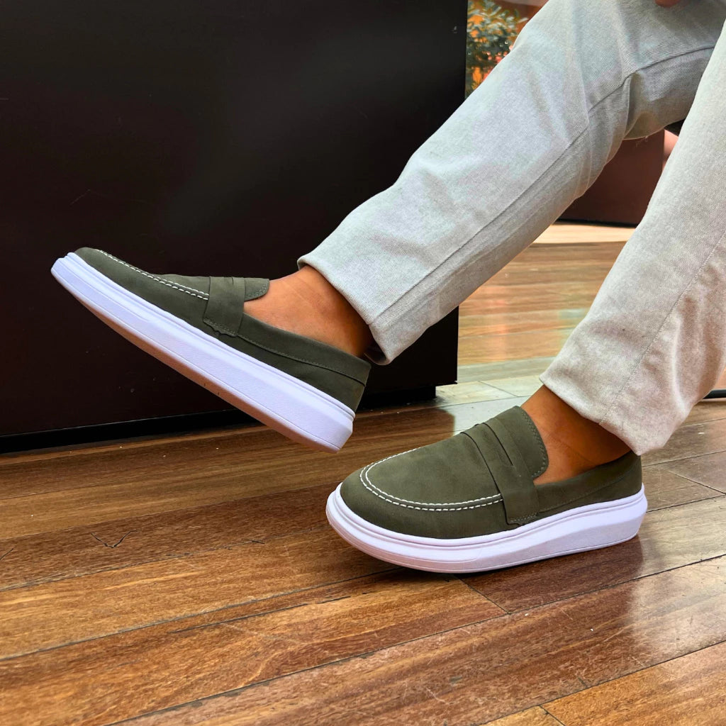 Produzido com material premium e costura reforçada à mão, oferece durabilidade, conforto e um caimento impecável nos pés. O solado emborrachado com tecnologia antiderrapante garante segurança ao caminhar, enquanto a palmilha anatômica proporciona bem-estar durante todo o dia.